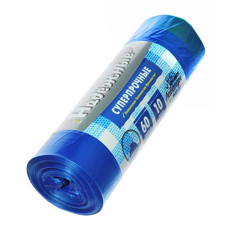 Мешки для мусора 60л с завязками 10шт РОМАШКА НАДЁЖНЫЕ СИНИЕ х24