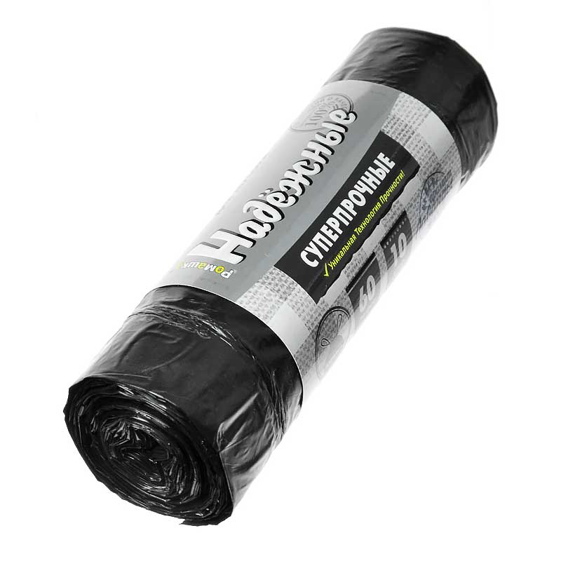 Мешки для мусора 60л с завязками 10шт РОМАШКА НАДЁЖНЫЕ ЧЕРНЫЕ