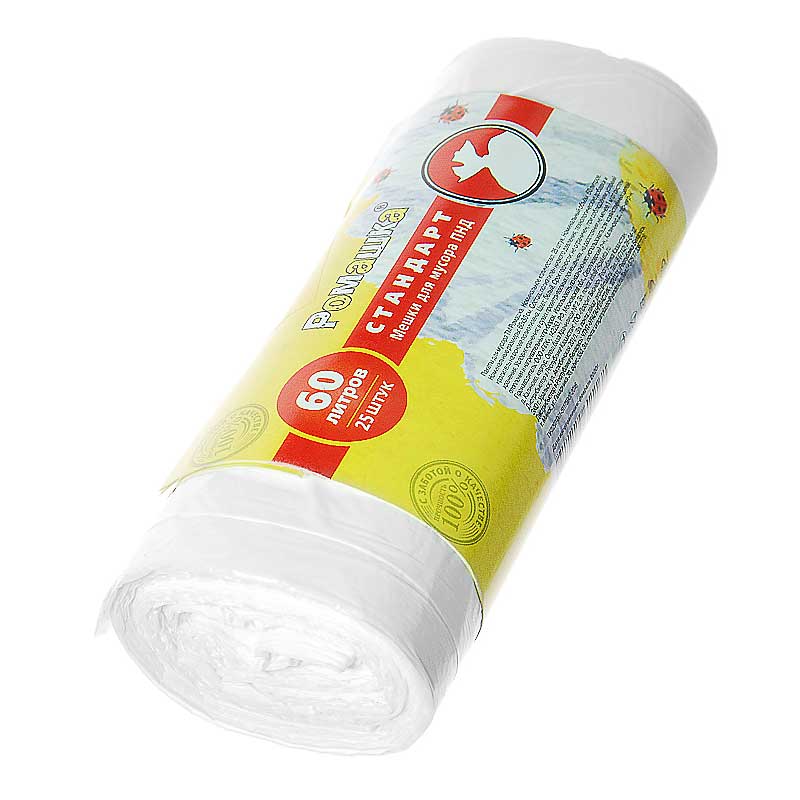 Мешки для мусора 60л 25шт РОМАШКА СТАНДАРТ БЕЛЫЕ х25