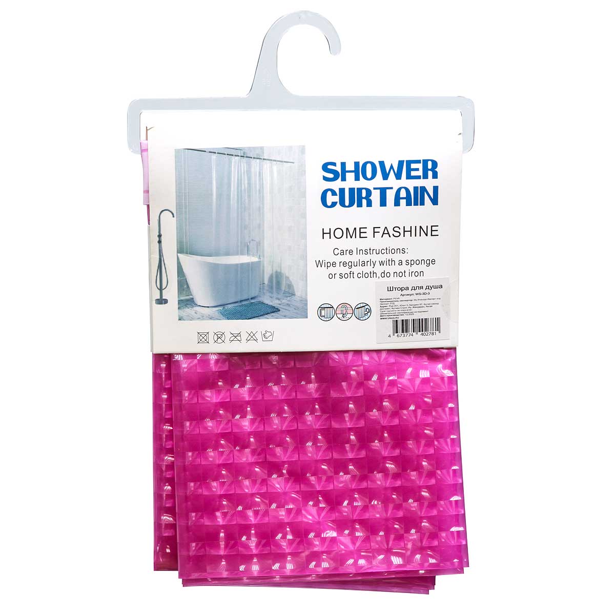 Шторы для ванной WS-3D-3 180*180см розовая