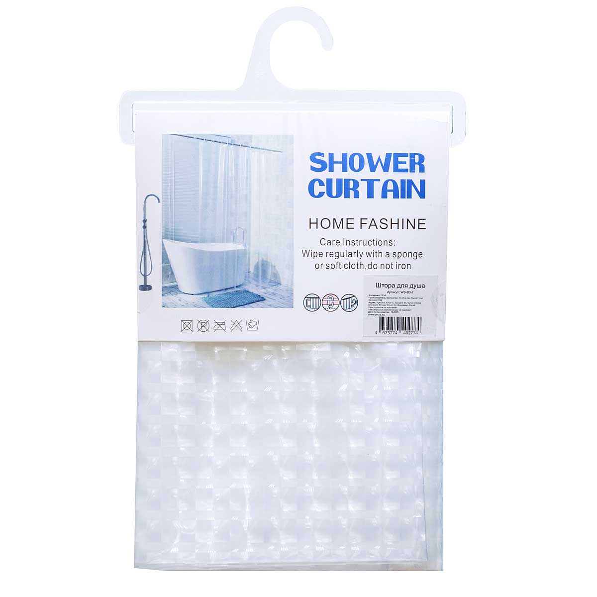 Шторы для ванной WS-3D-2 180*180см белая