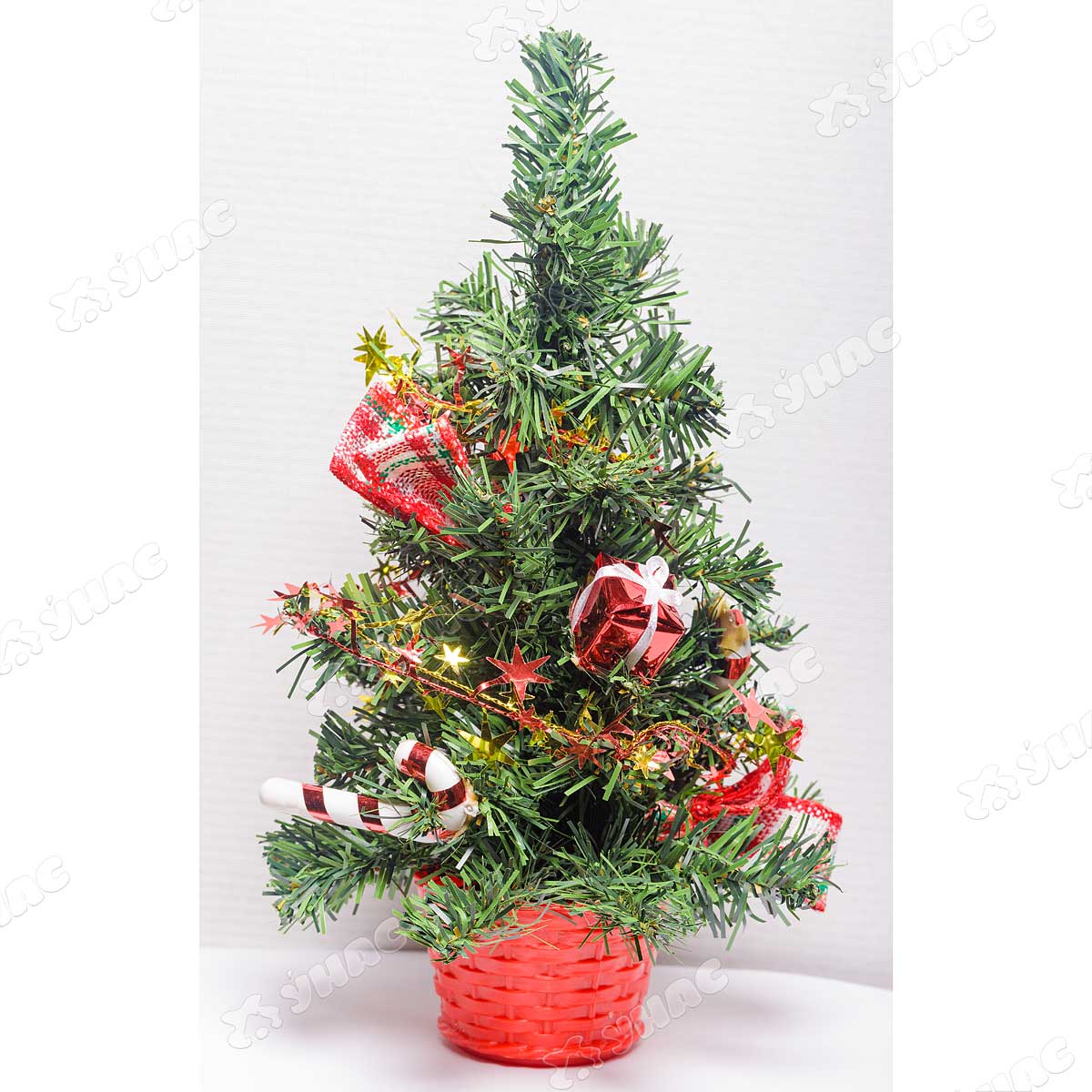 Искусственная новогодняя елка красная в корзинке 30см