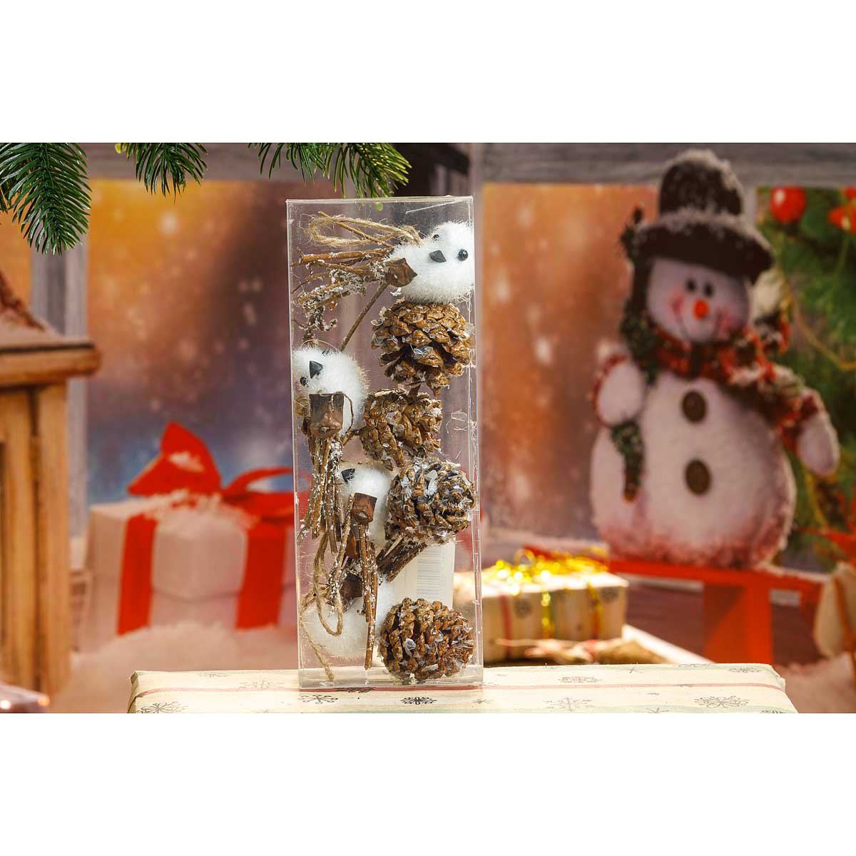 Новогодний елочный шар "Птичка на шишке" белый X5804 4шт 8см