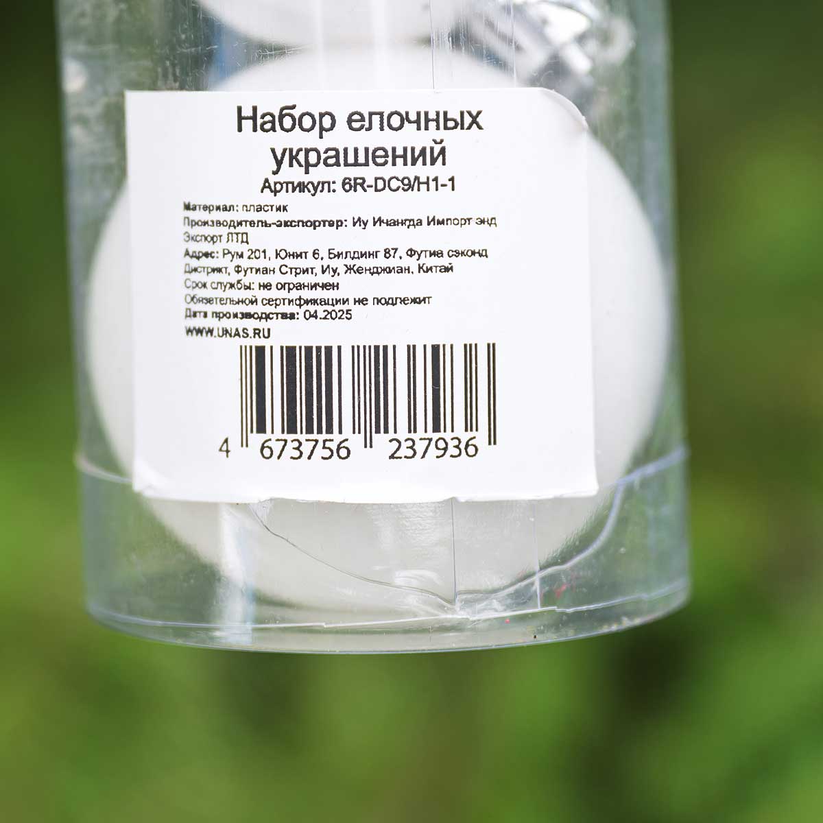 Набор елочных украшений 6R-DC9/H1-1 6 см 9 шт Шары Бархат белый