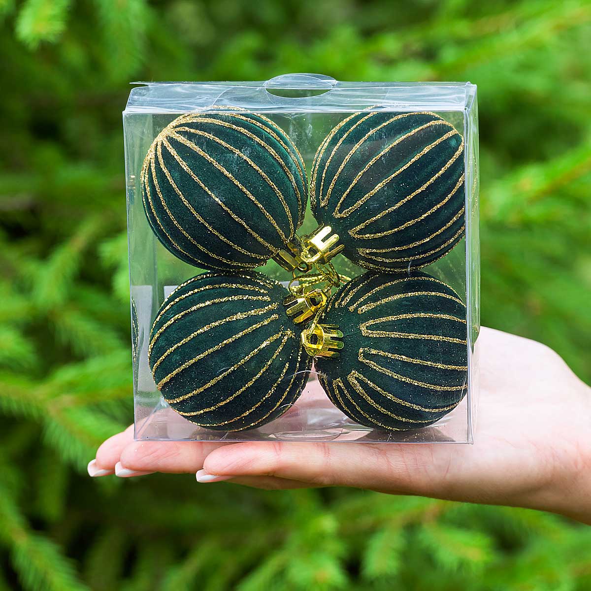 Набор елочных украшений 6RDC4-H82-4 5 см 4 шт Шары Бархат изумрудный