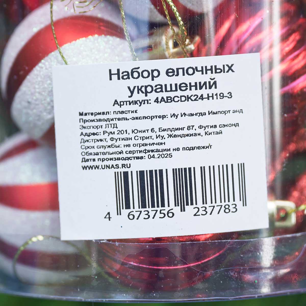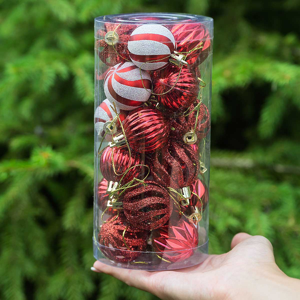 Набор елочных украшений 4ABCDK24-H19-3 4 см 24 шт Шары Красные с белым