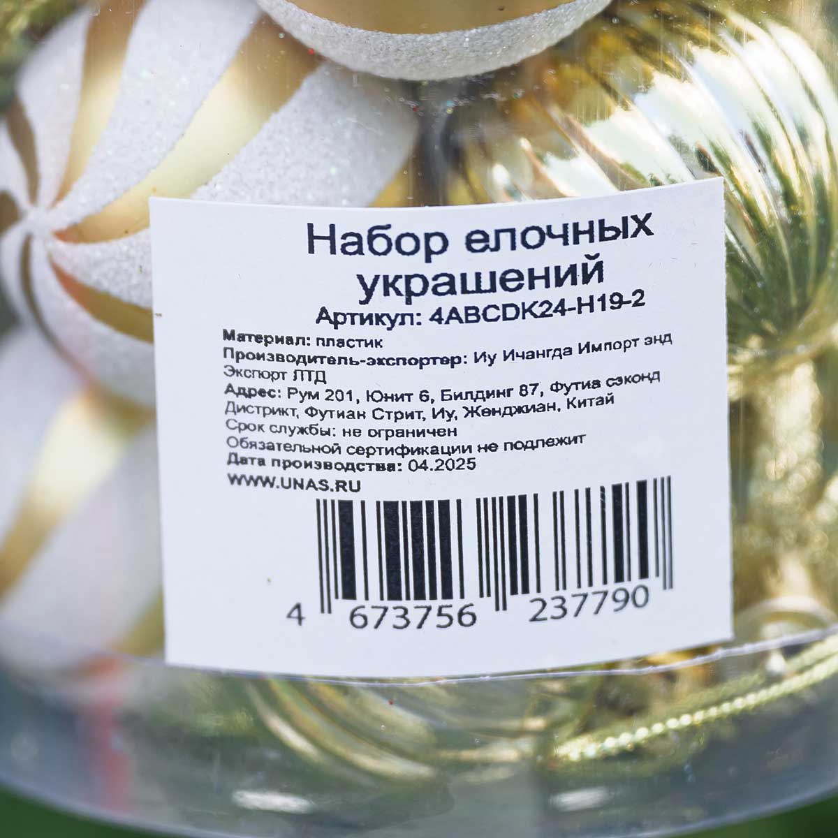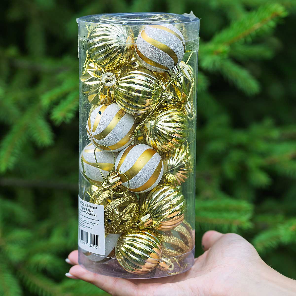 Набор елочных украшений 4ABCDK24-H19-2 4 см 24 шт Шары Золото с белым