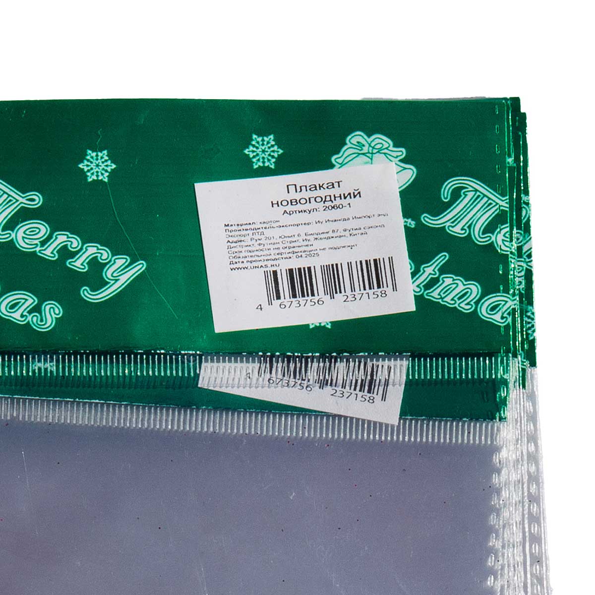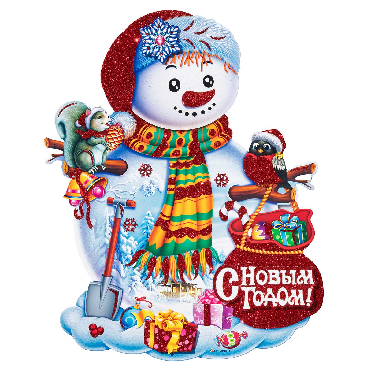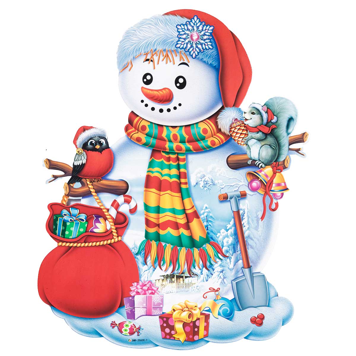 Плакат новогодний 2060-1 50 см Снеговик с птичкой и белкой