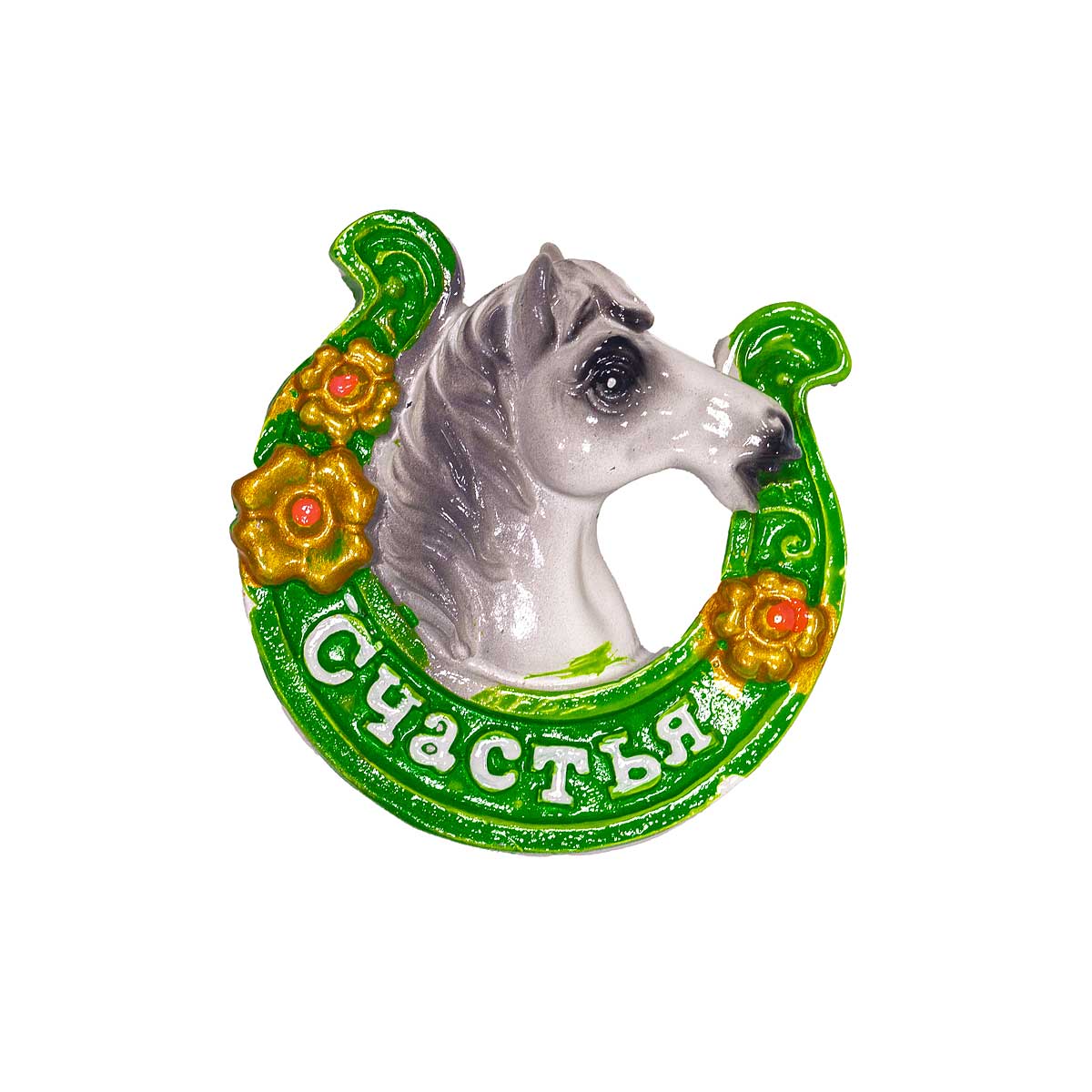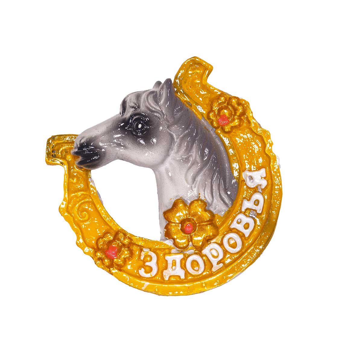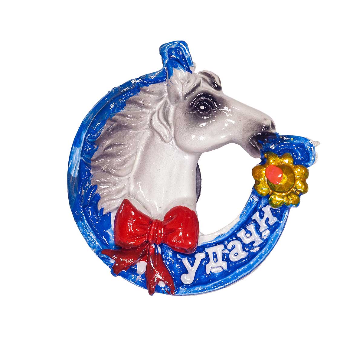 Магнит 25353-2 Лошадь с подковой и пожеланием 4,5*5 см (ЦЕНА ЗА 24ШТ)