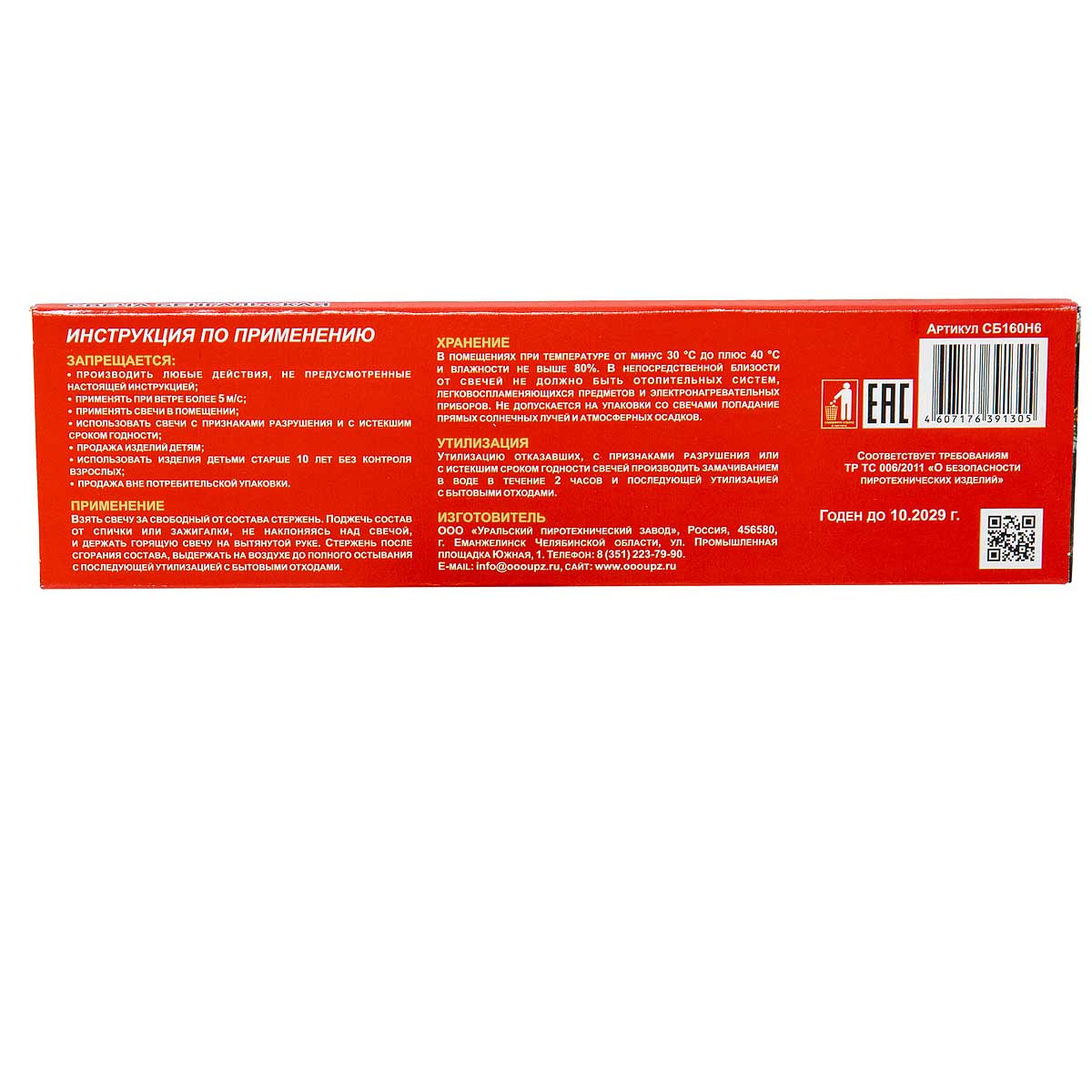 Бенгальские огни 160 мм (6шт) новогодние УПЗ
