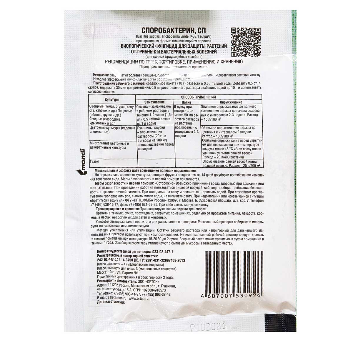 Биологический фунгицид "Споробактерин Вегетация" Ортон 10гр