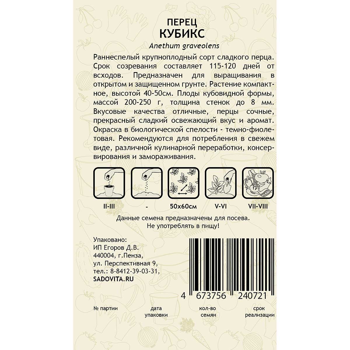 Перец Кубикс F1 10шт ЭКСКЛЮЗИВ Садовита Ц/Новтнка