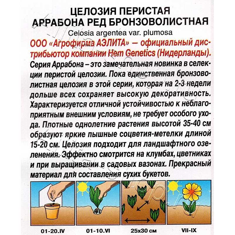 Семена Целозия перистая Аррабона ред бронзоволистная Аэлита Ц